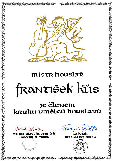 Jsem opravdu šťastná, že jsem v roce 2004 získala na houslových kurzech Václava Hudečka mistrovský nástroj z dílny Františka Kůse. Přesto, že jsou tyto housle teprve tři roky staré, mají tolik zajímavých barev, že by po zvukové stránce mohly konkurovat starým italským nástrojům. Líbí se mi medová barva olejového laku a dokonalé vypracování. Františku, přeji Ti, aby Tvé housle dělaly stále jen radost dalším muzikantům.